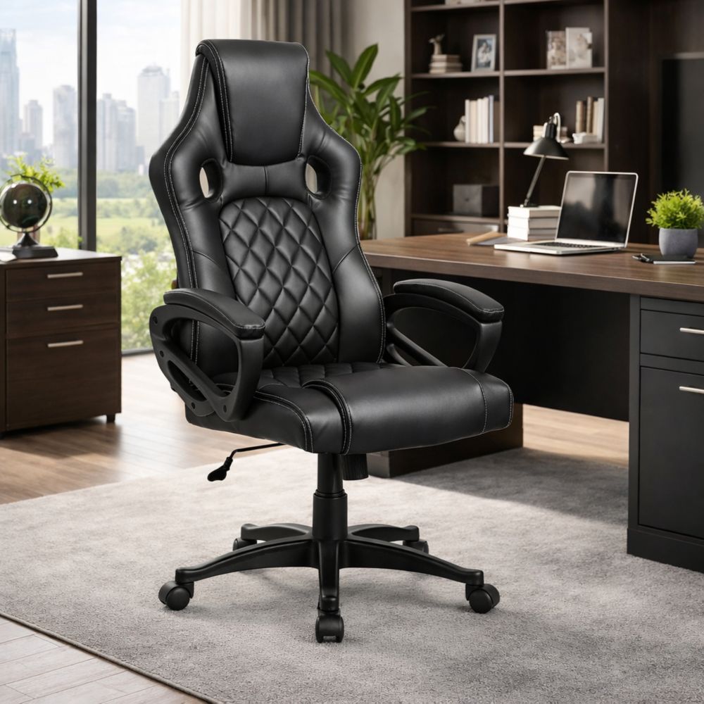 The diamond-quilted backrest and seat not only elevate the visual appeal but also provide enhanced cushioning and support, making long hours at your desk feel effortless.